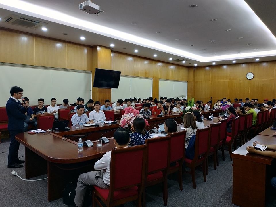 Tham dự hội thảo gồm đại diện BLĐ Khoa CNTT – ĐH Kinh tế kỹ thuật công nghiệp và các thầy cô giáo trong Khoa, Thầy Sinh là đại diện VTC Academy- đơn vị đào tạo công nghệ thông tin hàng đầu Việt Nam và anh Hùng là đại diện Hải Phong- cầu nối giúp sinh viên VN có cơ hội thực tập tại Nhật. Chương trình đã thu hút hơn 150 sinh viên khoa CNTT trường ĐH KTKTCN đến tham dự hội thảo “CƠ HỘI XUẤT KHẨU LAO ĐỘNG VỚI NGÀNH CNTT”.