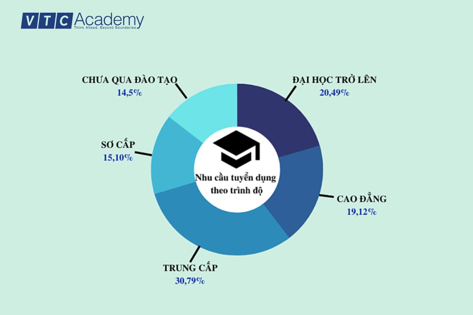 Câu chuyện tấm bằng cao đẳng, trung cấp khó xin việc đã không còn đúng với xã hội tiến bộ ngày nay. Khi các bạn học cao đẳng, trung cấp, các bạn sẽ được “cầm tay chỉ việc”, bắt tay vào làm trực tiếp nên sau khi tốt nghiệp các bạn có thể hiểu chính xác công việc cụ thể là gì và phải giải quyết như thế nào. Đó là lý do chính khiến các nhà tuyển dụng ngày nay dần quan tâm đến các nguồn nhân lực từ các trường cao đẳng, trung cấp. Theo kết quả báo cáo của Trung tâm dự báo nhu cầu nguồn nhân lực và thị trường lao động Tp.HCM cho thấy nhu cầu tuyển dụng lao động có trình độ cao đẳng trung cấp đang rất cao, thậm chí còn cao hơn cả trình độ đại học trở lên.