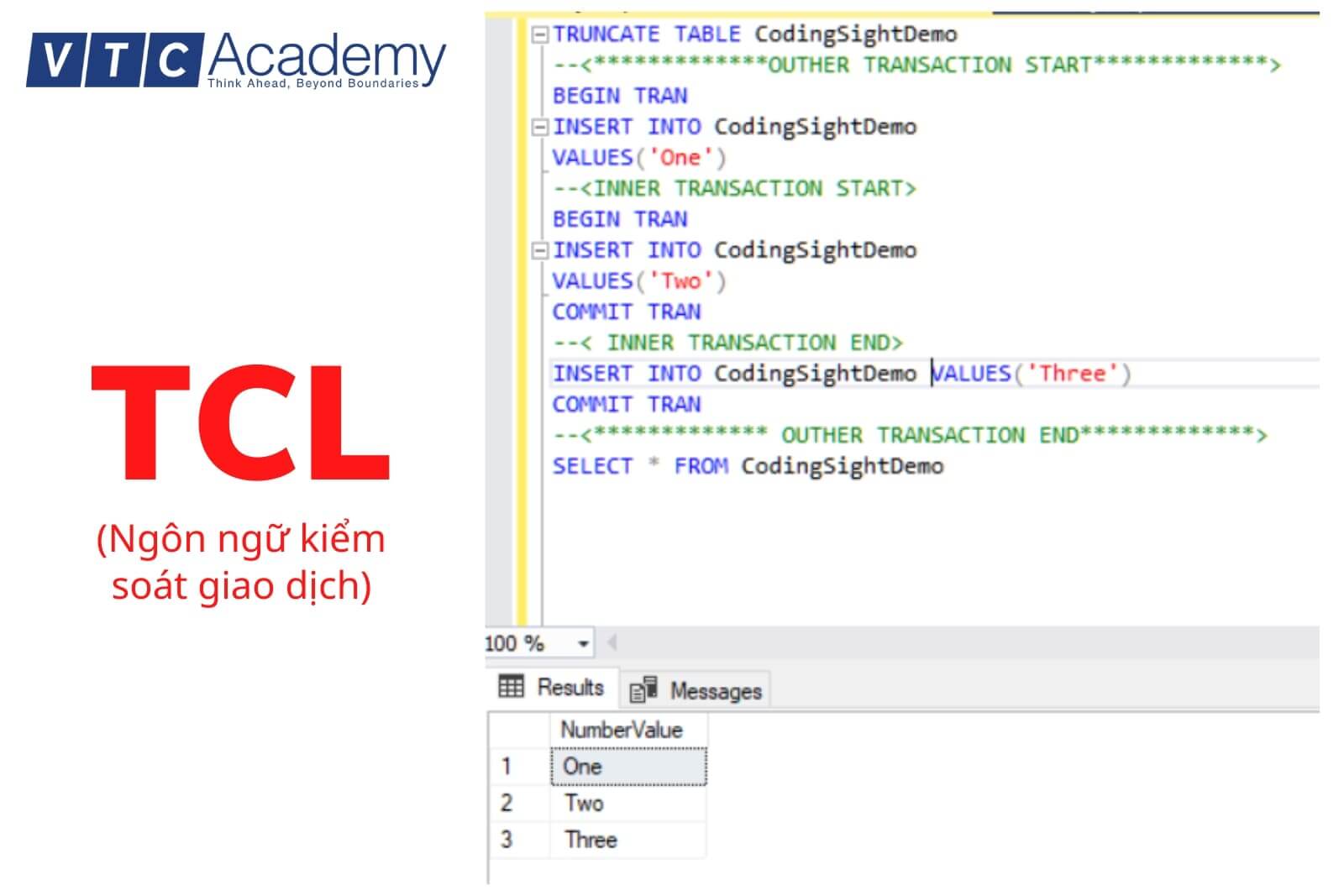 Một số câu lệnh trong TCL: