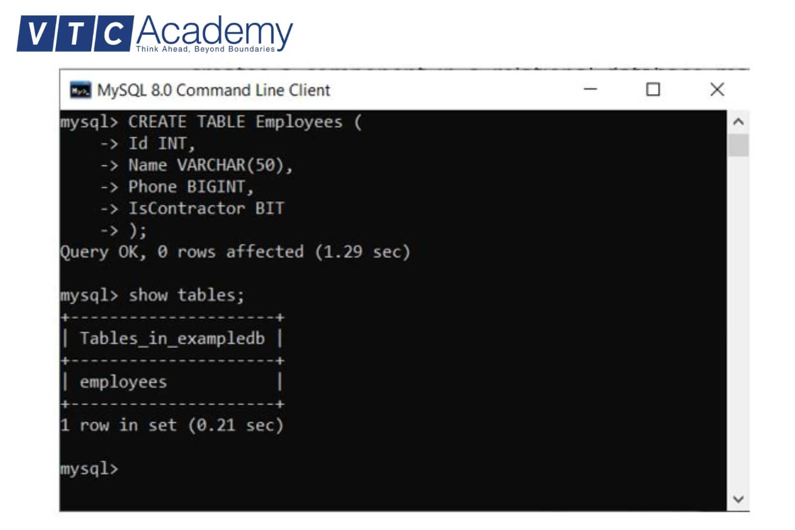- Create: lệnh này được dùng để tạo bảng mới trong database.