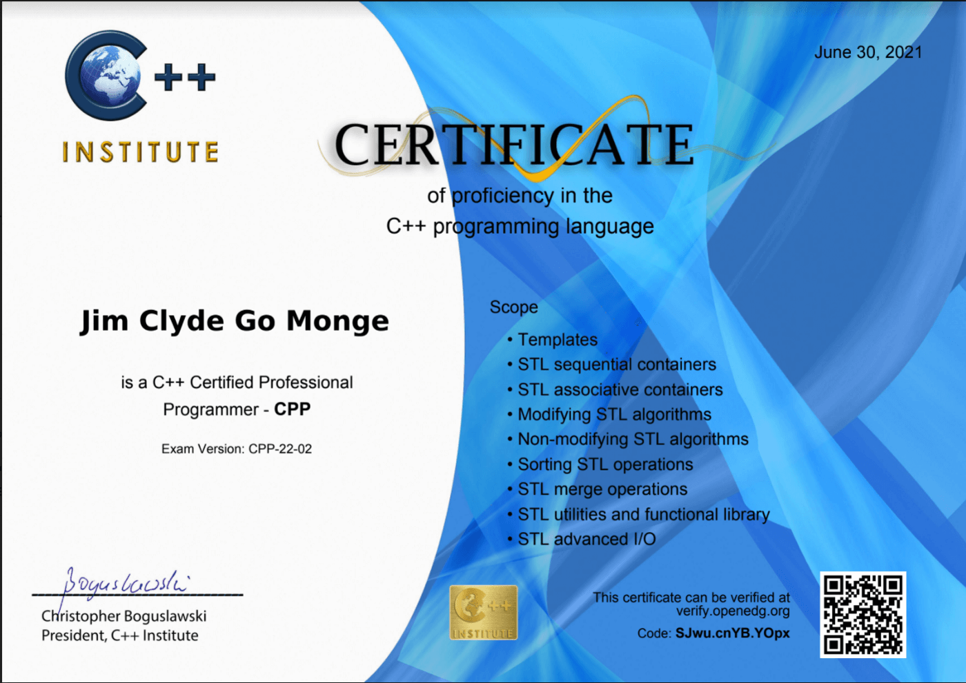 Chứng chỉ C và C ++