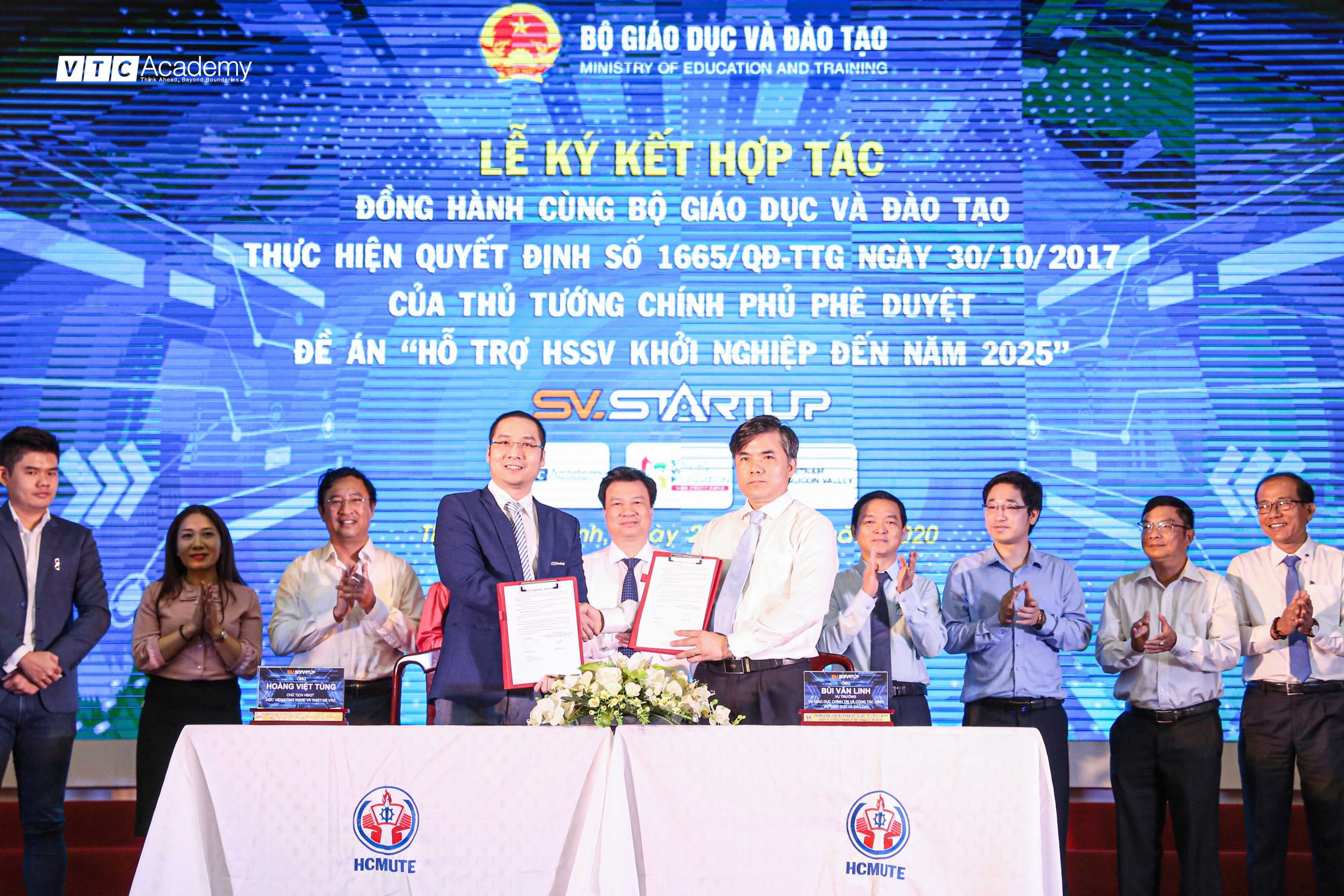 Một trong những hoạt động nổi bật nhất tại lễ phát động cuộc thi là Buổi lễ ký kết hợp tác đồng hành giữa Bộ Giáo dục và Đào tạo với 03 đơn vị đào tạo và doanh nghiệp tiêu biểu, điển hình là Học viện Công nghệ thông tin và Thiết kế VTC (VTC Academy). Theo đó, VTC Academy sẽ phối hợp với Bộ Giáo dục và Đào tạo trong việc xây dựng kế hoạch và thực hiện triển khai đề án 1665 đến các cơ sở đào tạo trên cả nước trong việc tạo ra môi trường hỗ trợ sáng tạo và khởi nghiệp, đồng thời nâng cao kiến thức và kỹ năng về khởi nghiệp cho HSSV toàn quốc.