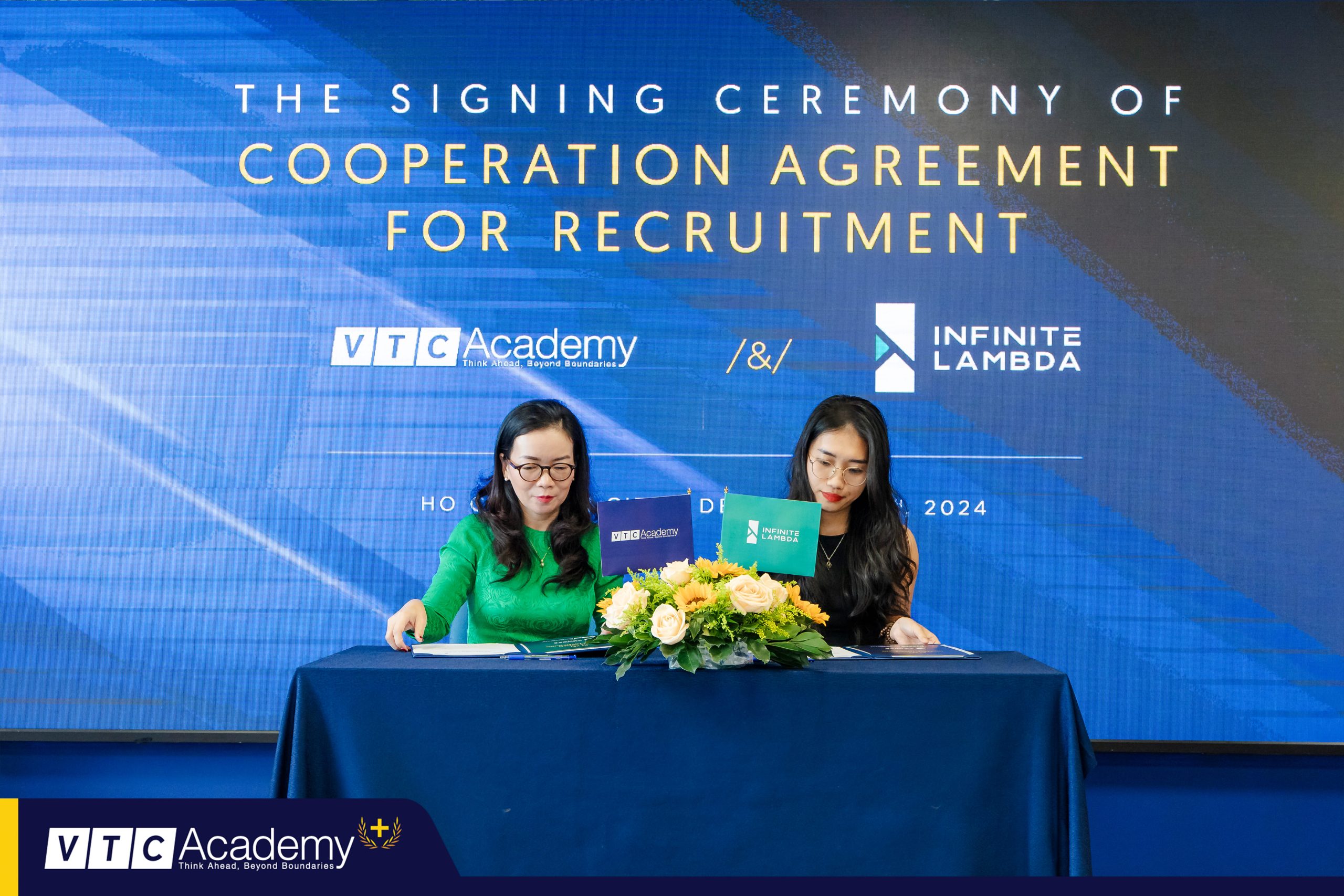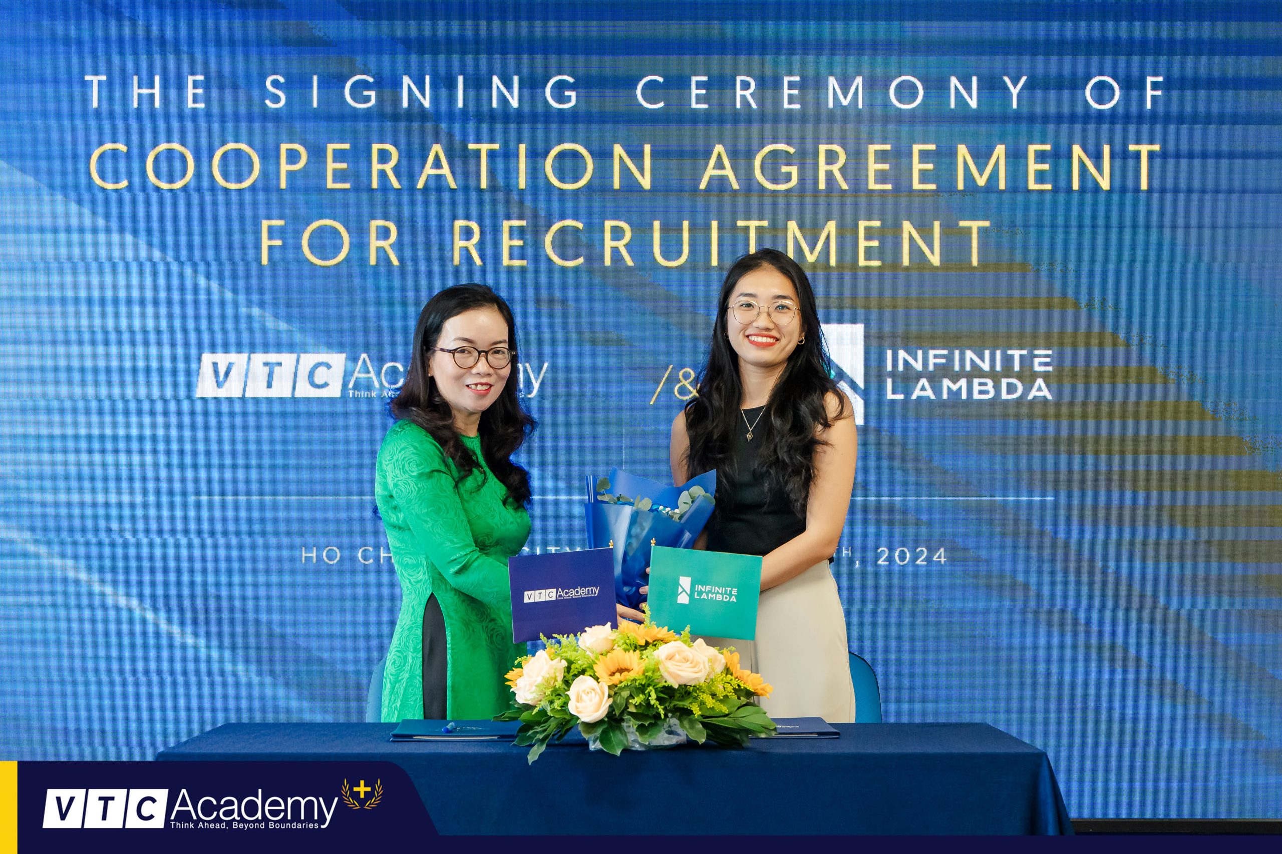 Trong sự kiện, đại diện hai bên, bà Lê Thị Khánh An, thành viên Hội đồng Quản trị VTC Academy, và bà Lê Kim Minh Châu, Global Talent Acquisition Business Partner của Infinite Lambda, đã cùng đặt bút ký kết thỏa thuận trước sự chứng kiến của đông đảo khách mời, đối tác và học viên VTC Academy. Thỏa thuận này đánh dấu bước tiến mới trong việc đưa học viên đến gần hơn với thị trường công nghệ toàn cầu, đặc biệt trong các lĩnh vực dữ liệu và điện toán đám mây.