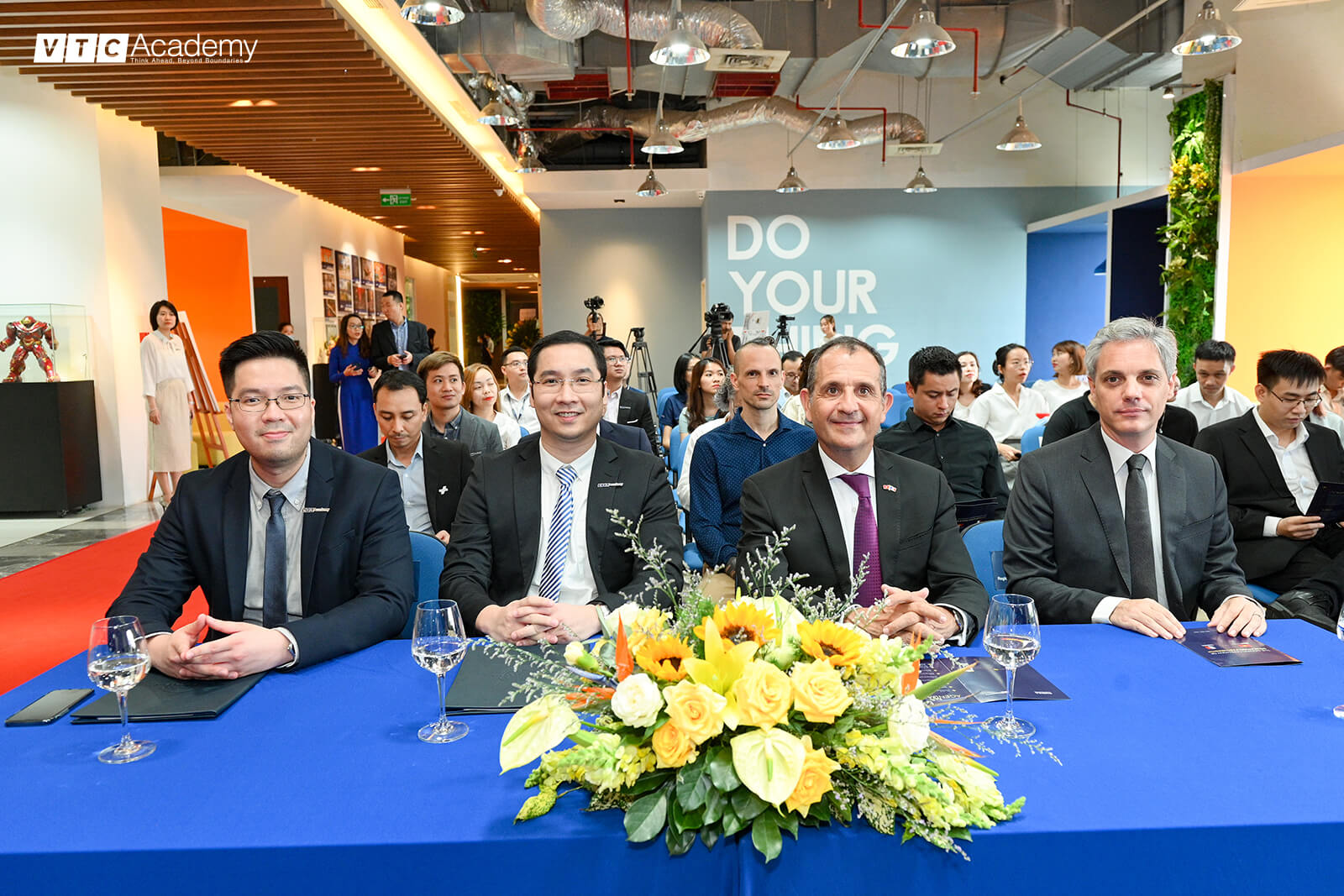 Phát biểu tại buổi lễ, ông Hoàng Việt Tùng – Chủ tịch Hội đồng quản trị của VTC Academy chia sẻ: “VTC Academy được thành lập hơn 10 năm trước và chúng tôi đã đào tạo cho hơn 10,000 học viên tại Việt Nam. Sau hơn một thập kỷ phát triển con người, chúng tôi đặt ra một tầm nhìn xa hơn: học viên Việt Nam sẽ được tiếp thu tinh hoa của thế giới, đưa sinh viên Việt Nam đi xa hơn cả Việt Nam, đó là đi đến Pháp, Canada, Singapore, Hong Kong, Nhật, Mỹ, Úc,… đến khắp mọi nơi mà con người có thể đi đến được.”